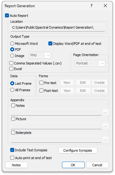 Report Generation allows the user to output a report in a single Microsoft Word document, Adobe PDF or a collection of images in a folder at the end of a test. The following article will guide you through this process.